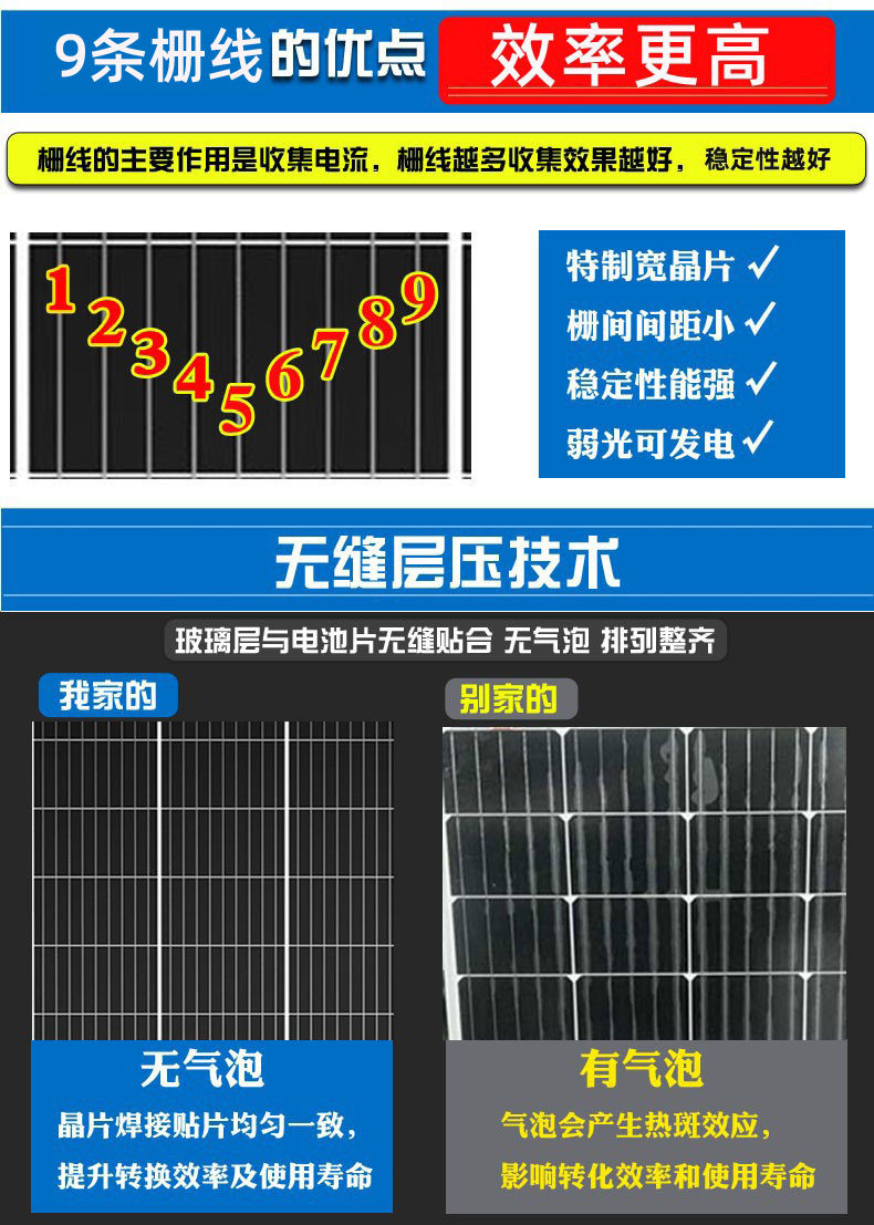40W9-wire monocrystalline (405x670x25mm) 120W 9-wire monocrystalline (780x680x30mm) 120W 5-wire monocrystalline (1020x670x30mm) 160W 9-wire monocrystalline (1040x760x30mm) 250W 5-wire polycrystalline (1640x992x35mm) 200W 9-wire monocrystalline (1480x680x35mm) 405W 5-wire monocrystalline (2015x996x35mm).