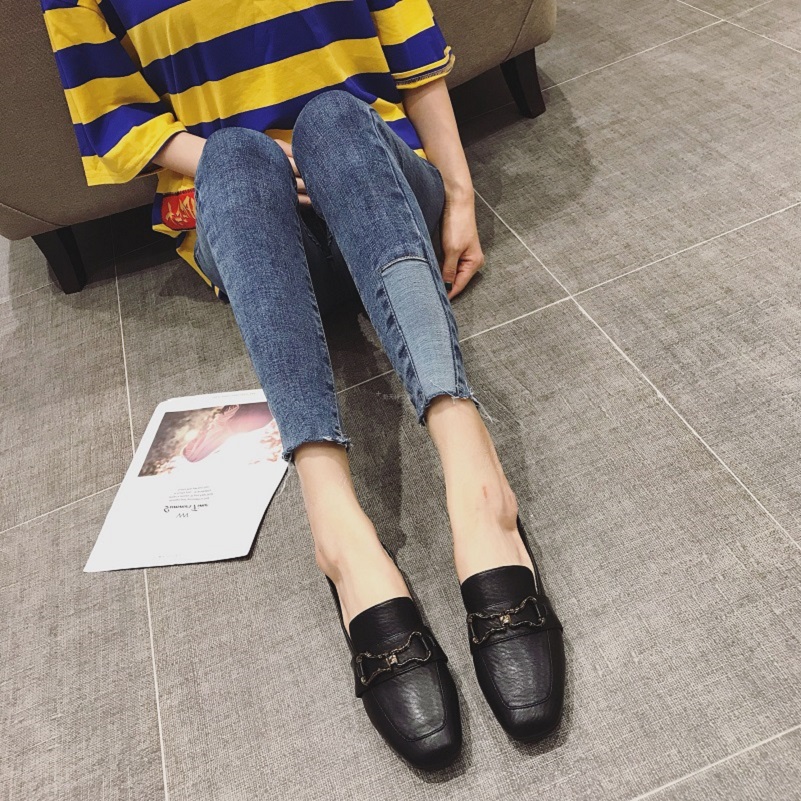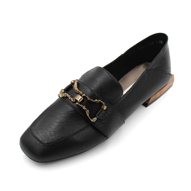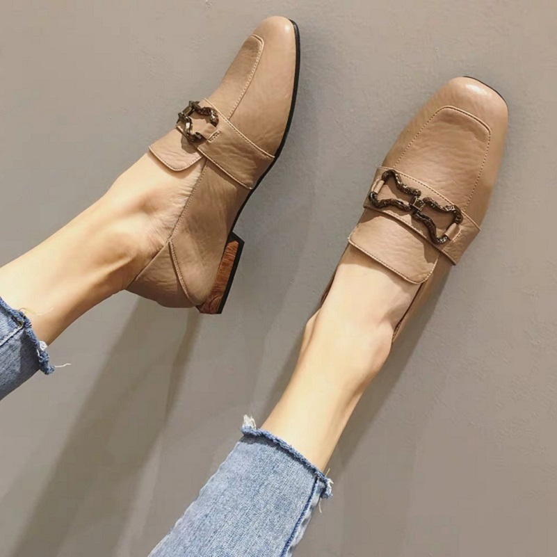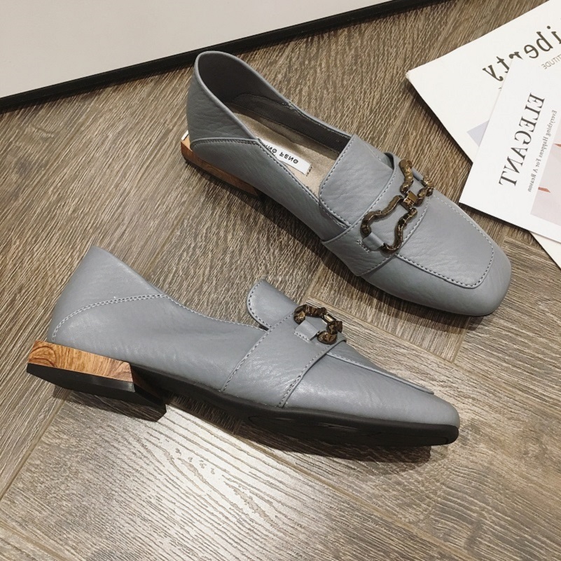 Tide brand smog blue square toe loafers women 2022 spring new shallow mouth flat bottom low heel single shoes comfortable small leather shoes women