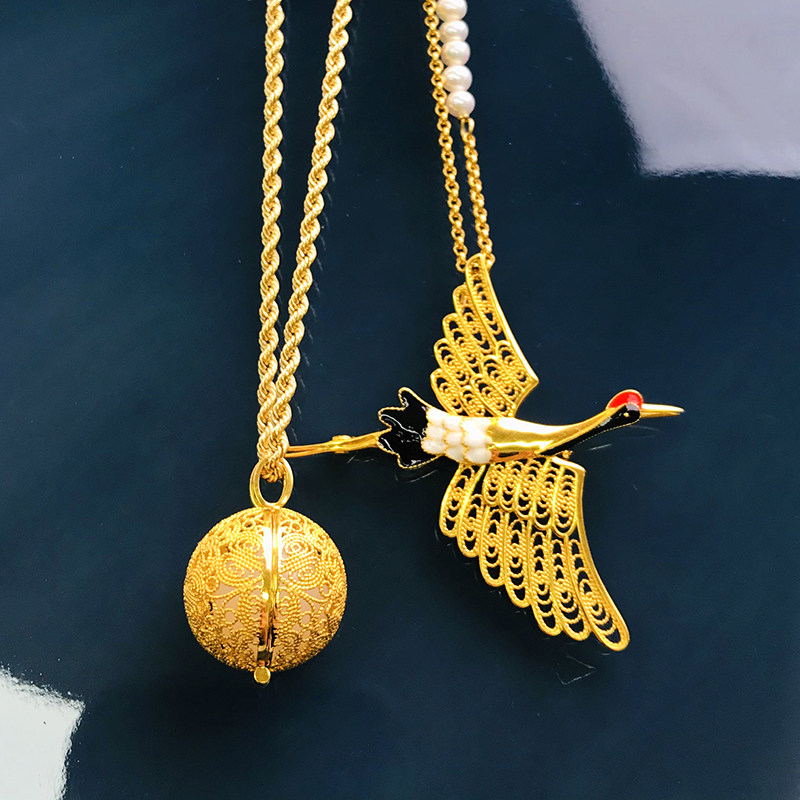 (Bear House Jewelry) Traditional craftsmanship Yanjing Eight Jedi Carved Foot Gold Flowers Silk Jingtai Blue Burn Blue