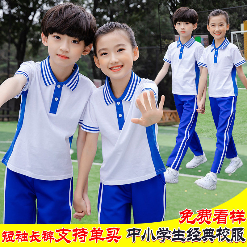 Blue summer (short-sleeved trousers) blue spring and autumn (coat trousers) blue three-piece suit (coat trousers T-shirt) white short-sleeved T-shirt blue summer trousers two bars