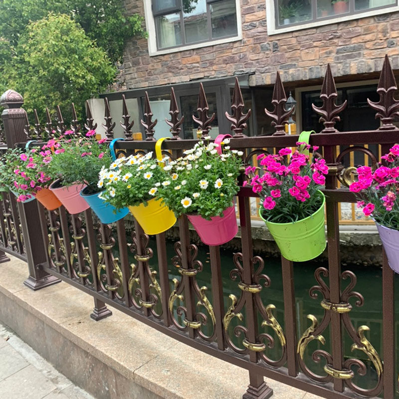 Balcony guardrail fence hanging bucket flower pot hanging pot pastoral home accessories hanging pot creative iron flower pot succulent potted plant