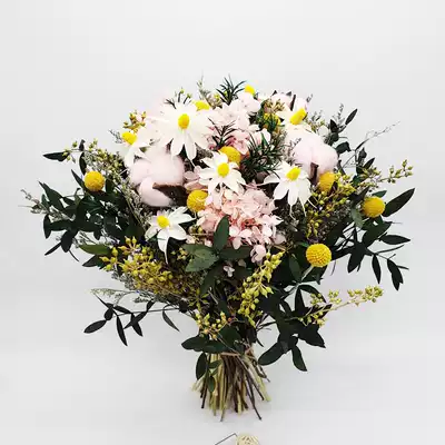 Well, real flowers, starry hydrangea, immortal roses, hand bouquet, Nordic style living room dining table decoration photo