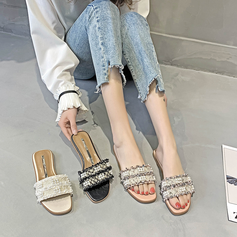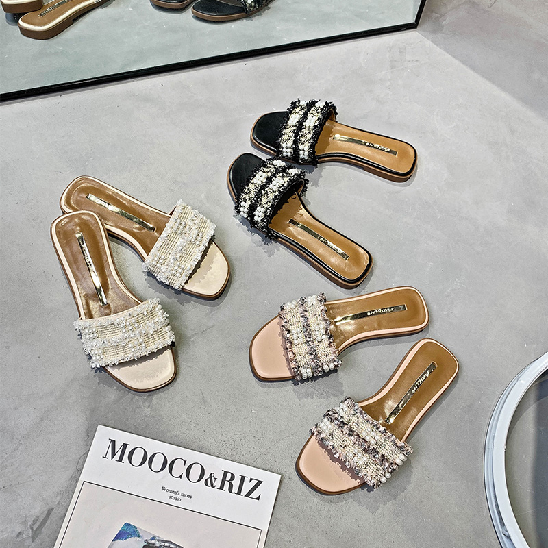 2023 Summer new web Red flat out for a pair of slippers women's summer outwear Fashion 100 Lady Cool Drag-Taobao