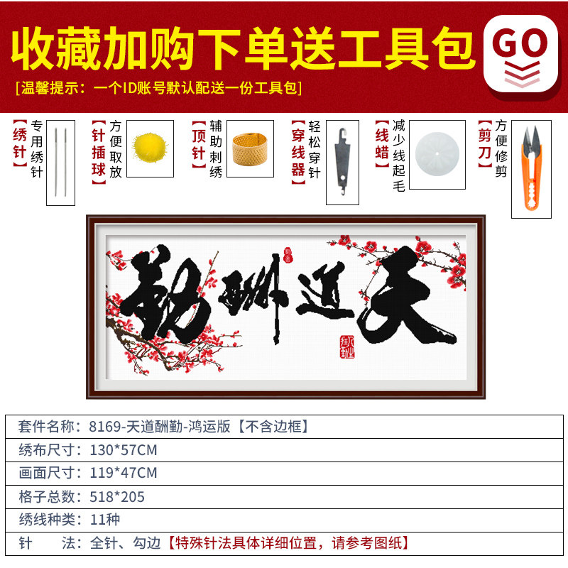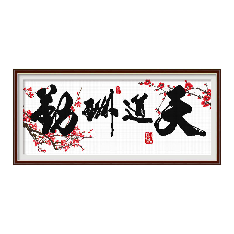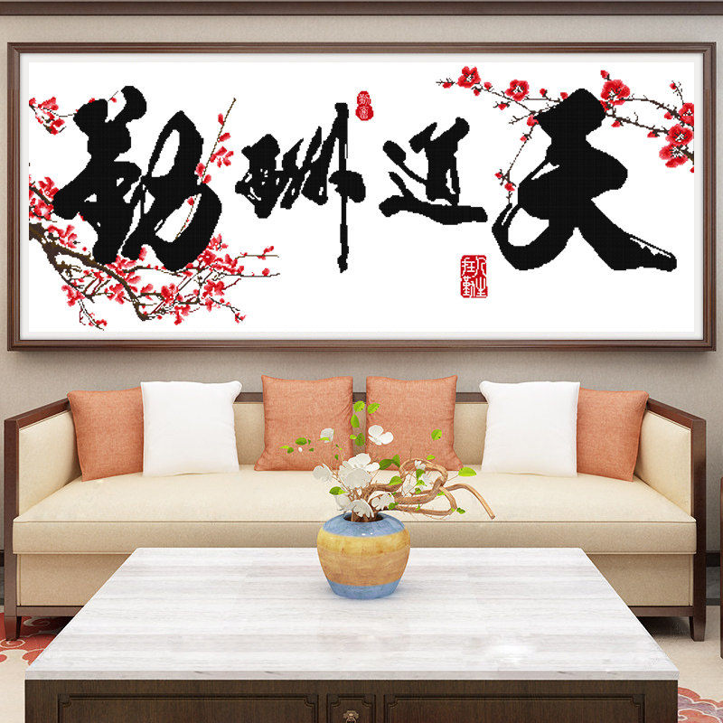 Cross embroidered road gainful attendance 2022 new minimalist modern living room Calligraphy Calligraphy calligraphy and painting office Line embroidered handmade embroidery