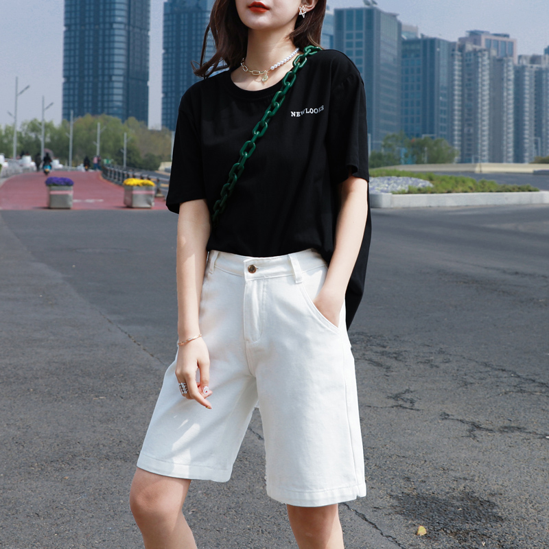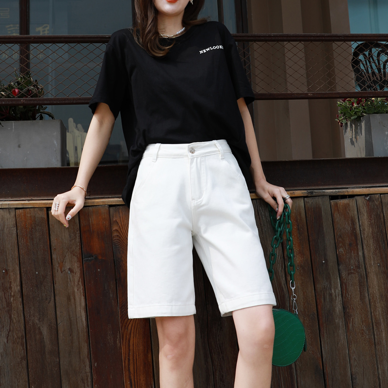 White 50% jeans Women Summer Korean version High waist Port Taste Straight Barrel Loose Casual Broadleg Shorts Riding Pants Tide