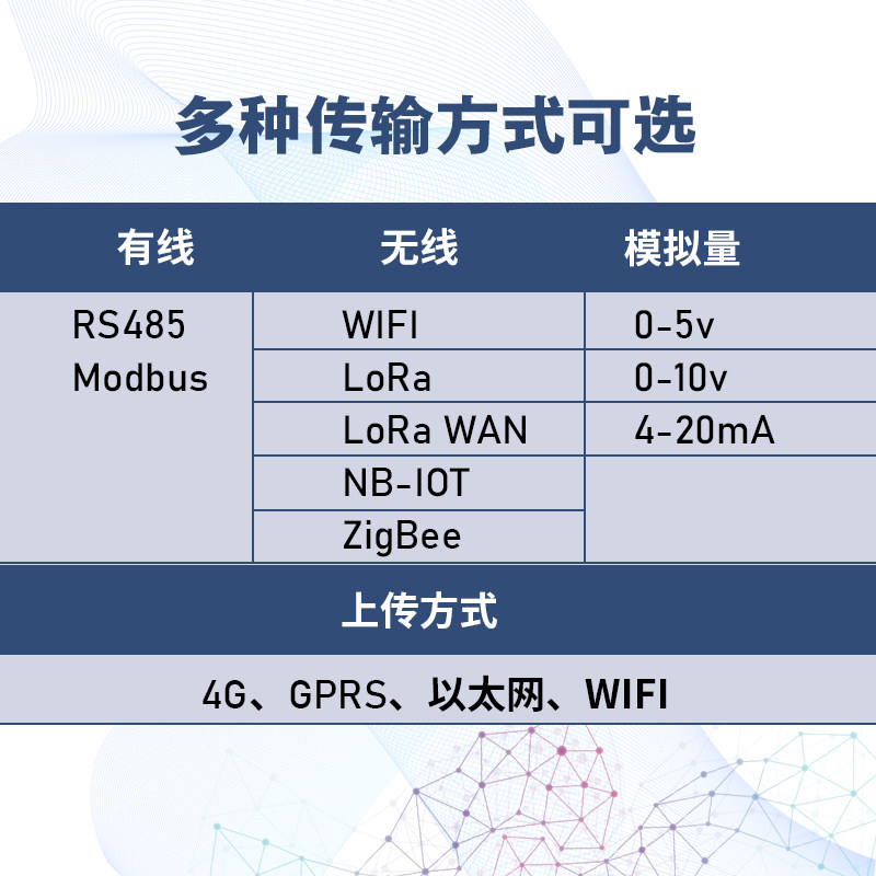 RS485LoraZigBeeWIFI0-5V0~10V4~20mA LCD screen plus 3 in 1 + temperature and humidity plus external extension rod plus duct type plus light louver box plus noise module LoRaWAN On the basis of LoRa, add LoRaZigbee battery power supply plus NB-IOT (battery) plus 4G networking 485 plus RJ45 networking 4 plus NBGPRS networking 485 plus