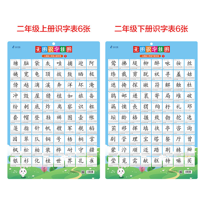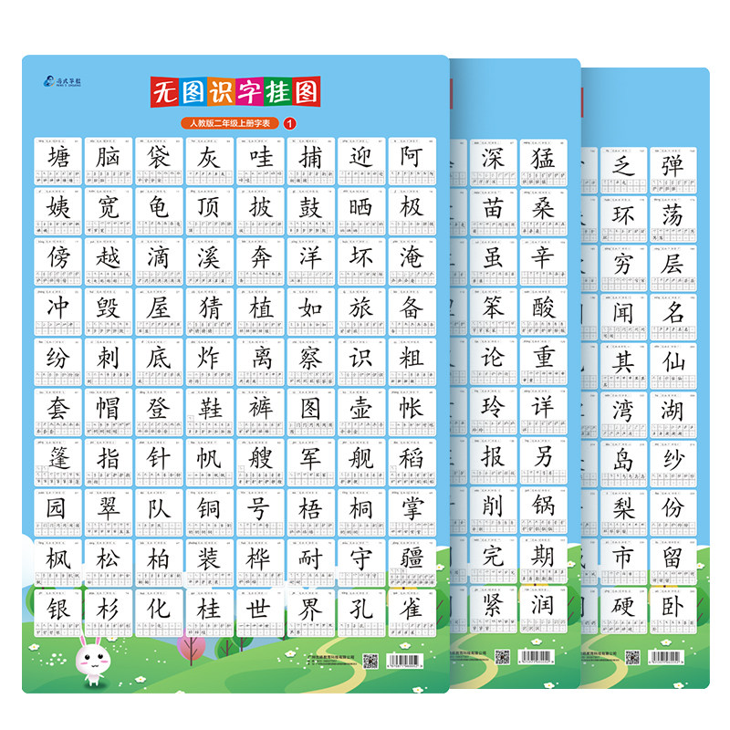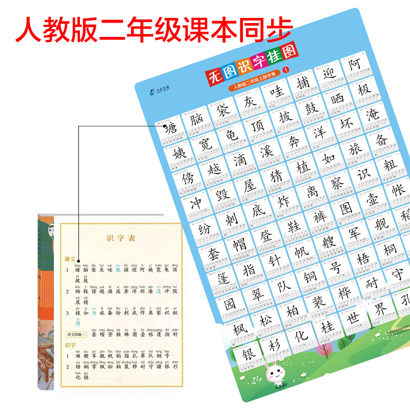 2021 teaching version of the second grade up and down books of new words Flip chart Primary school students Chinese textbooks synchronous silent literacy card table