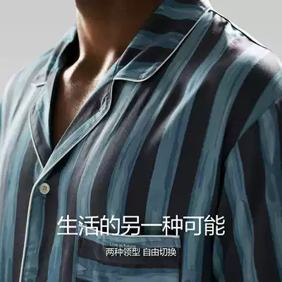 (The same style as Zhou Dongyu)Banana inner 5 series couple striped short-sleeved ice silk home wear suit cotton pajamas summer