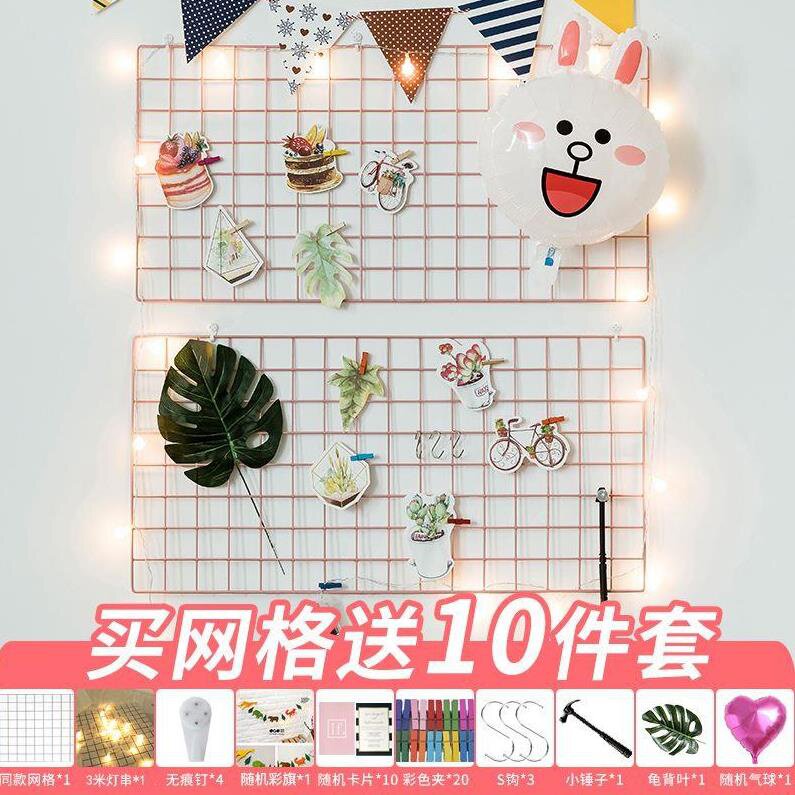 Photo wall hanging painting shelf living room American bedroom grid personality hanging wall background photo album rope clip Wall