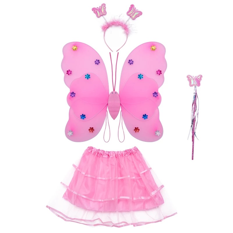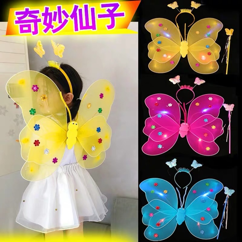 June 1 Butterfly Glowing Toy Wing Children's Princess Props Wonderful Fairy Angel Fairy Magic Wand Three-Piece Set
