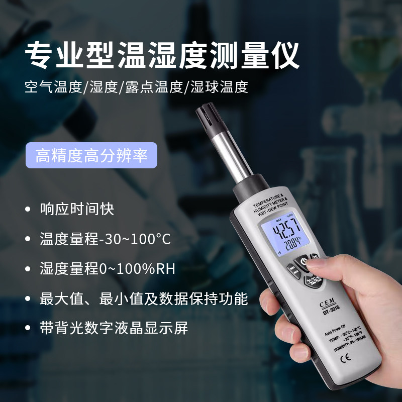 321S (-30~100°C) comes standard with dew point + wet bulb
