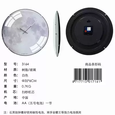 Dutch NeXtime standing Day Nordic luminous clock living room fashion creative 14 inch Silent Moon wall clock
