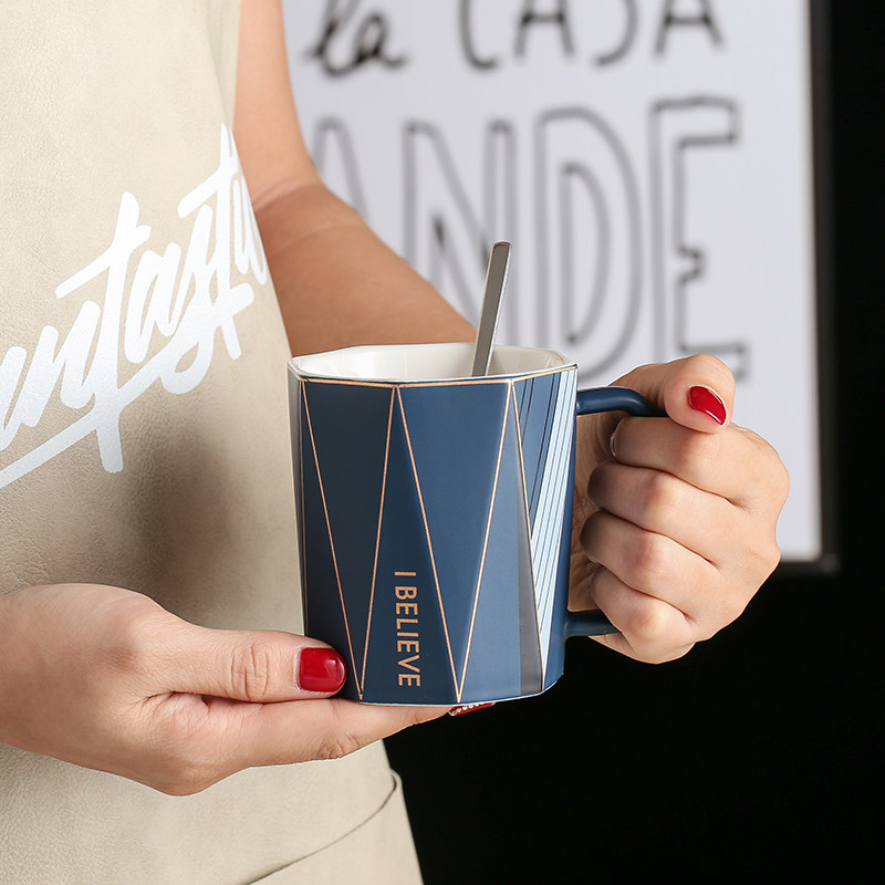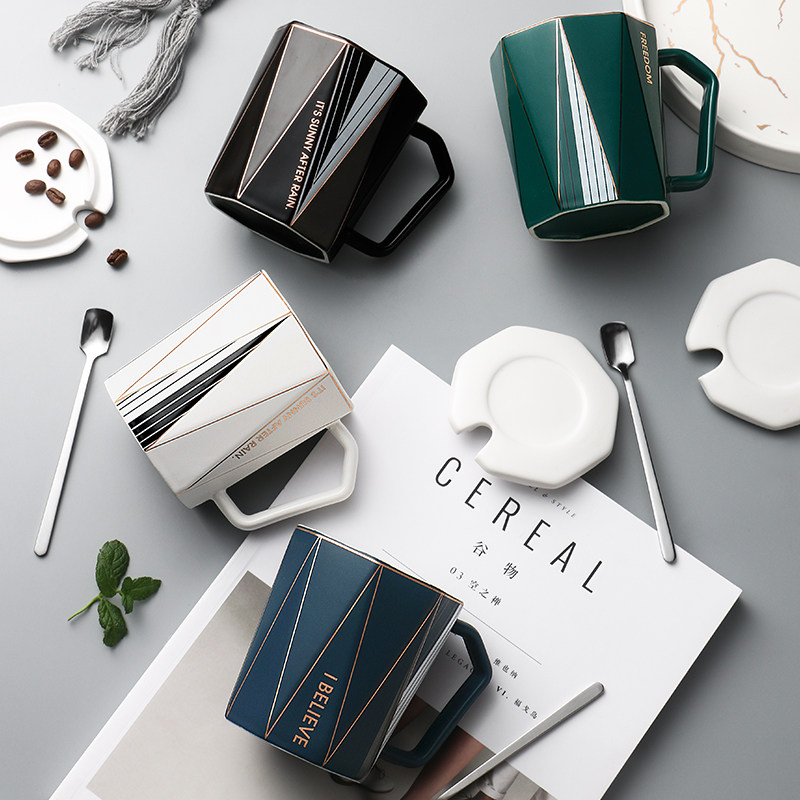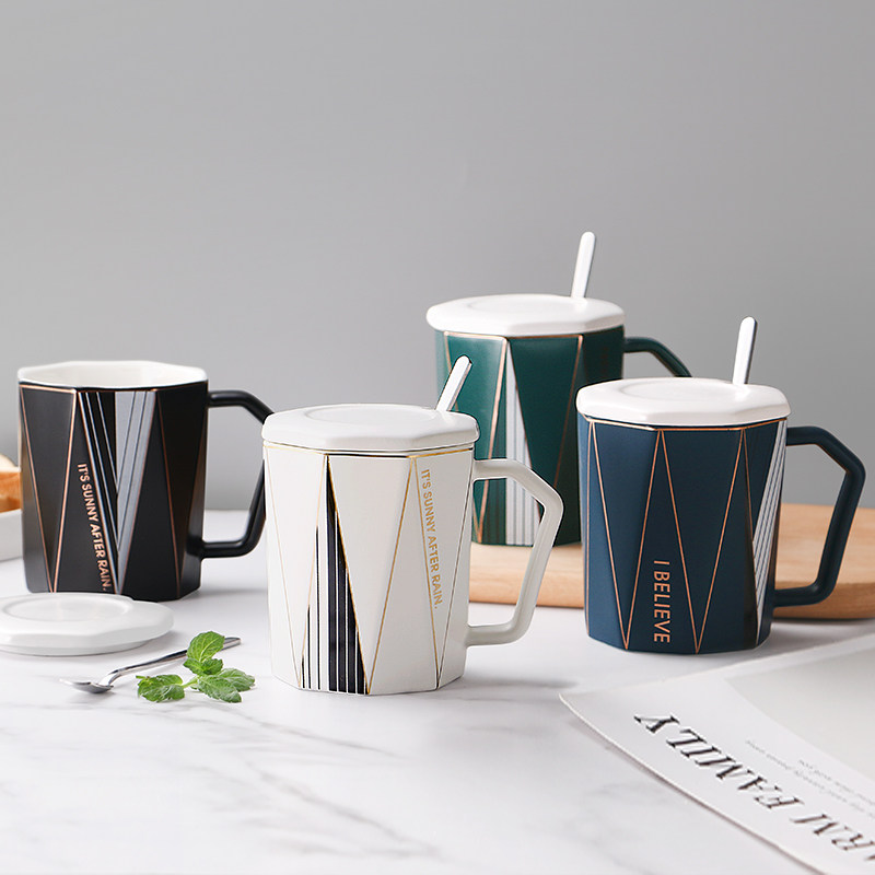 Nordic simple ceramic mug with lid spoon personality creative trend couple water cup ins coffee cup pair