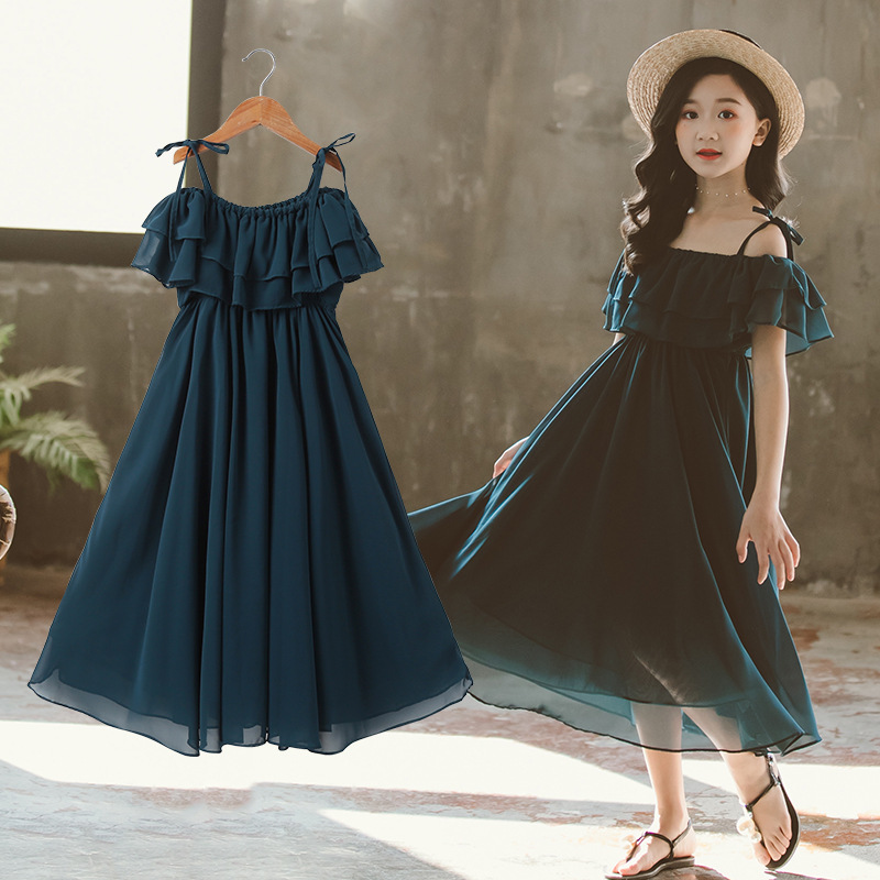 Girls summer long red dress over the knee strapless long skirt children girl baby big swing chiffon beach skirt fairy