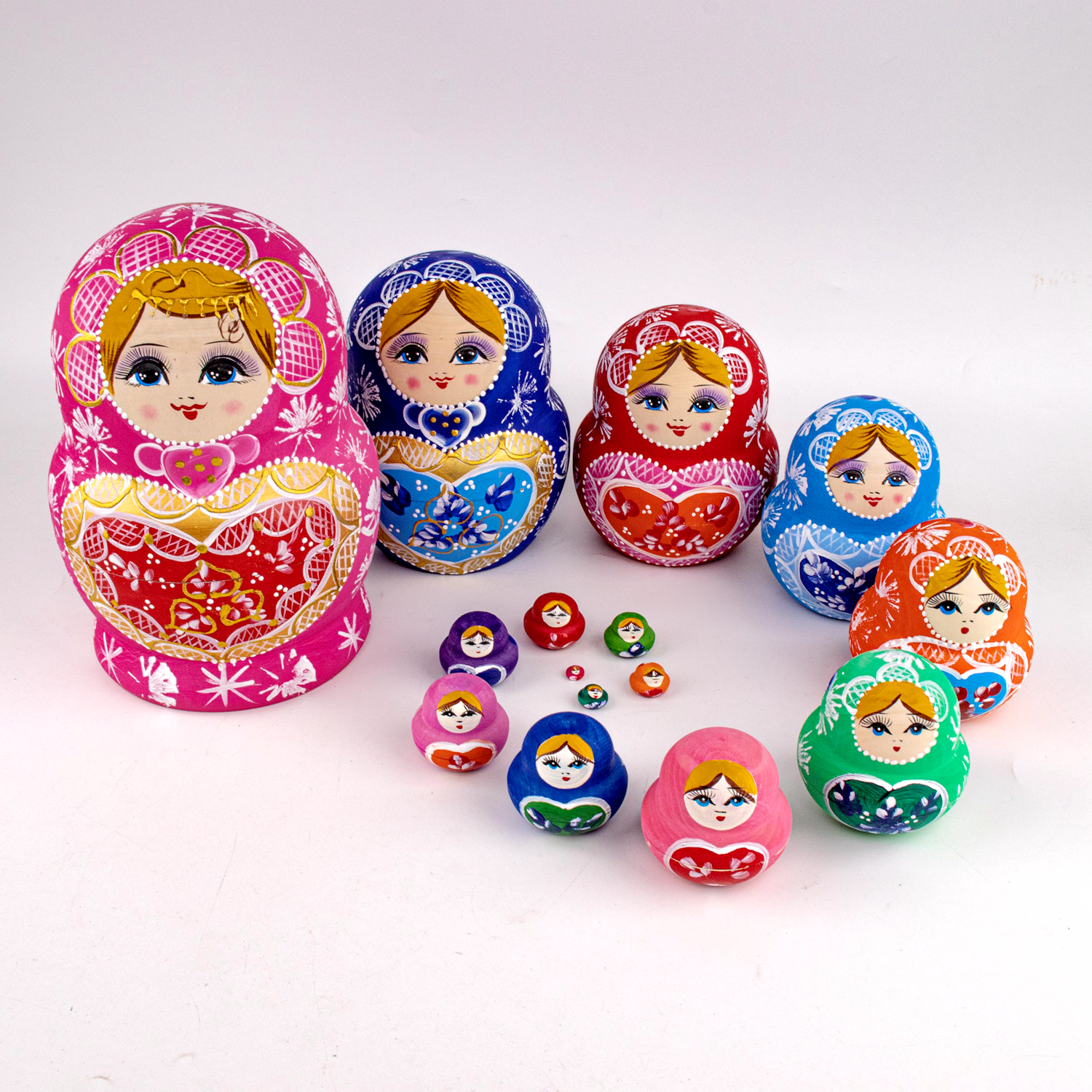 Russian sleeve 15 layers of pink peach heart air-dried linden wood trellis pure hand-painted puzzle toy pendulum