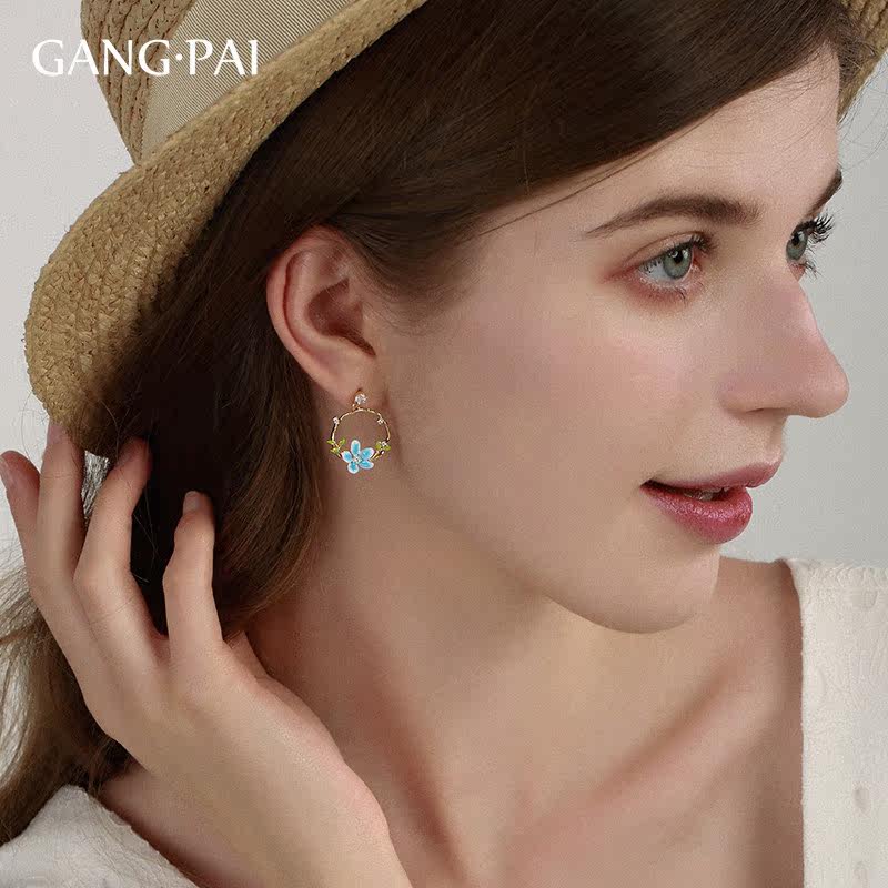Hong Kong style silver needle fashion small fresh flower ring earring 2021 new fashion web celebrity advanced sense earrings