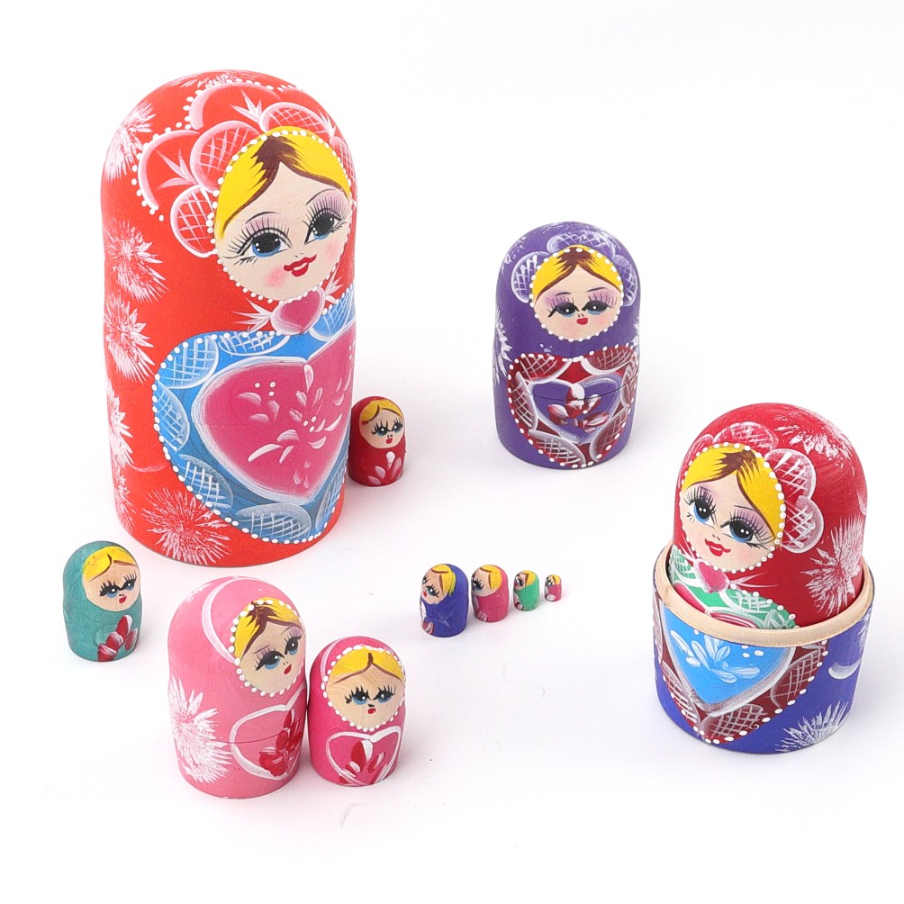 Russian nesting doll 15-layer red heart air-dried basswood pure handmade children's educational toys holiday gift environmental protection