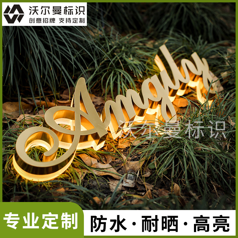 Stainless steel back luminous character crystal door headword hollowed-out billboard making Logo wall backlit sign set to do