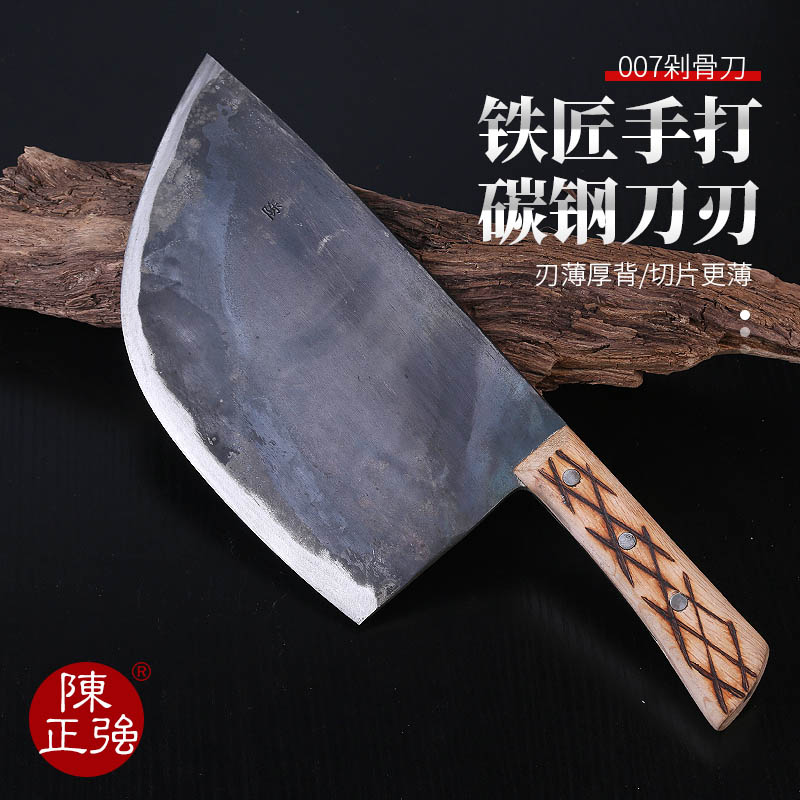 Chen Zhengqiang 007 Chopped Bone Knife hand forged and beaten carbon steel thickened chopped bone knife Large bone knife Home slaughtering multipurpose cutter