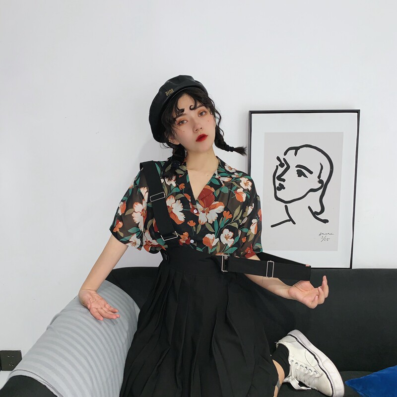 Shirt woman 2022 Summer new Korean version retro port Wind suit collar loose short sleeve Crushed Snowspun Shirt Blouse