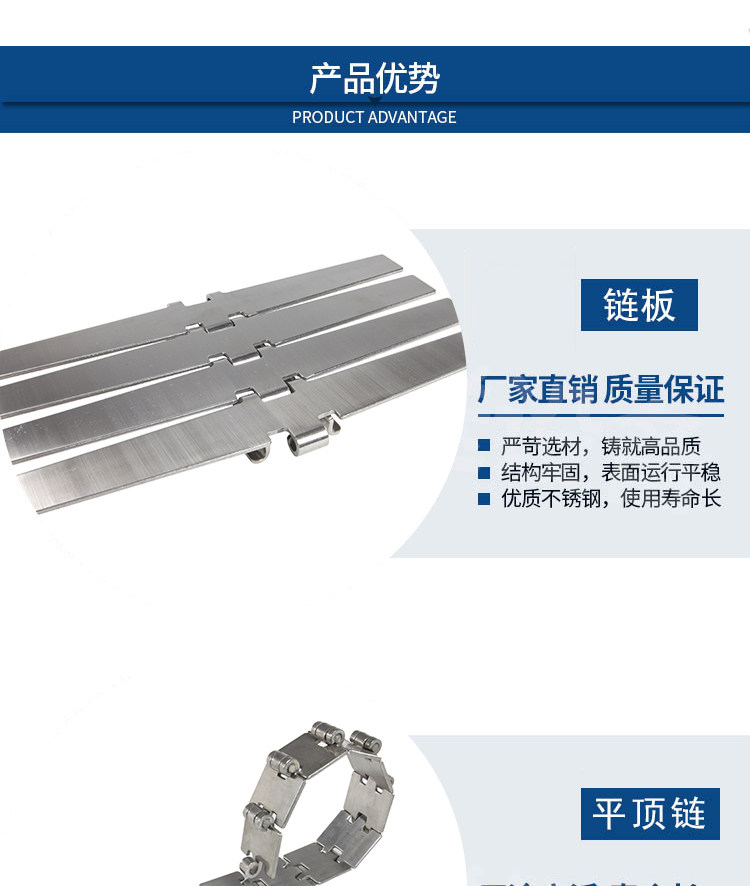Factory direct sales 304 2Cr13 stainless steel chain plate chain single hinge double hinge straight flat top chain conveyor