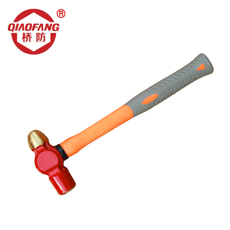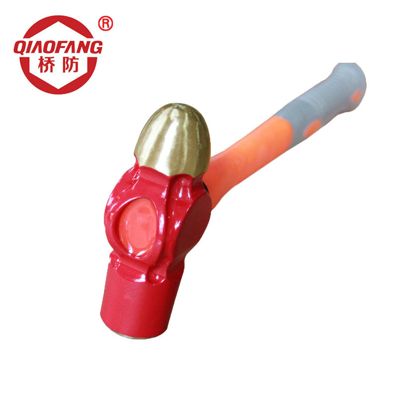 QIAOFANG QFA187 Explosion-proof Aluminum Bronze Plastic Handle Nipple Hammer Round Head Hammer Red Spraying