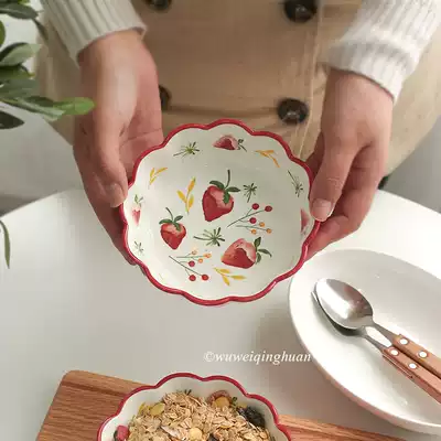 Japanese Strawberry Flower Bowl Twilight Drunk Drunk meets all gentle household fruit salad porcelain bowl