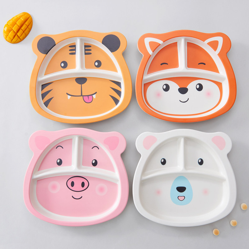 Papa Bear Bamboo Fiber Tableware Cartoon Animal Children Three Meal Plate Home Creative Baby Meal Plate Divided