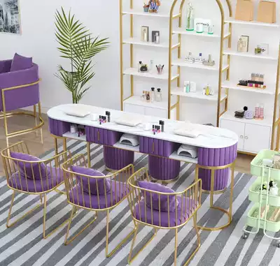 ins net red marble nail art table and chair set Single double light luxury nail art table Simple modern nail art table