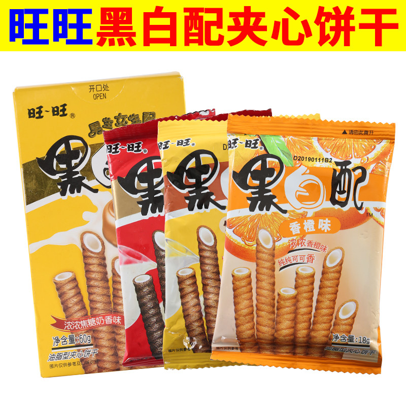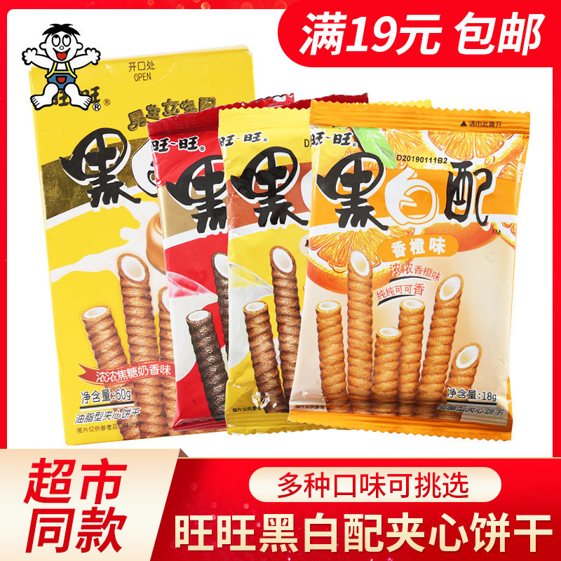 Wang Wangzai Black & White Matching 18g60g Sandwich Roll Bulk Zero Food Sandwich Biscuit Chocolate Snack Food Whole Boxes of Food