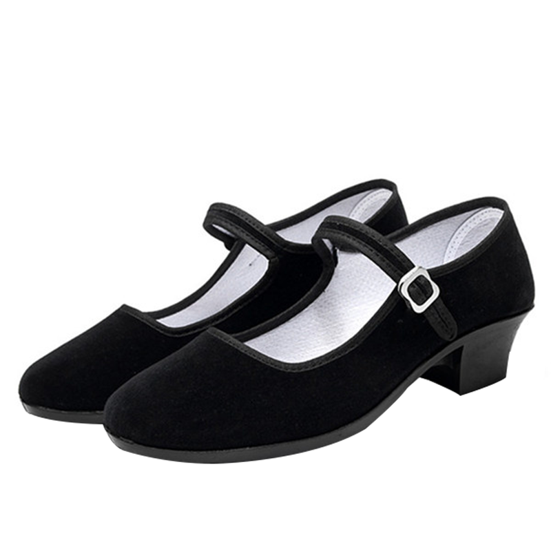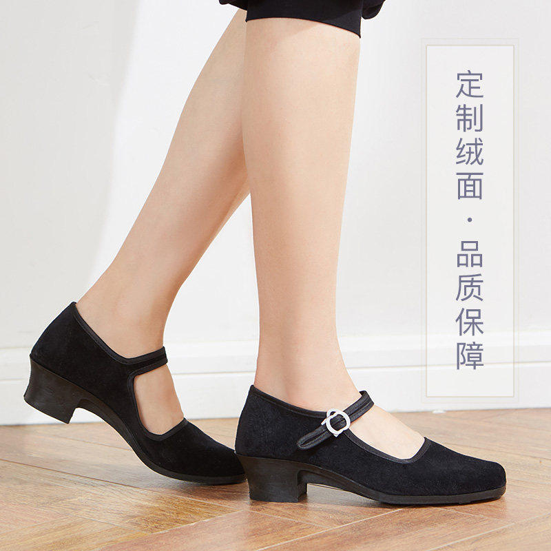 Red dance shoes, dance heels, black cloth shoes, Tibetan with high heel test, female Jiaozhou Northeast folk dance Yangko shoes