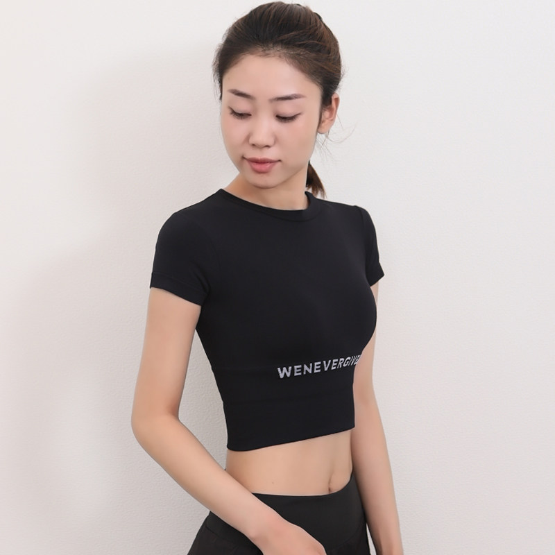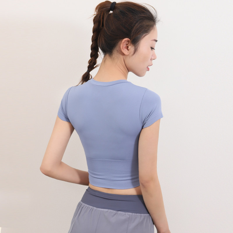 Nine Wheat One Pint Tight Reveal Navel Sport Blouse Women's Elastic Yoga Service Short Sleeve Speed Dry Short Running Fitness T-shirt
