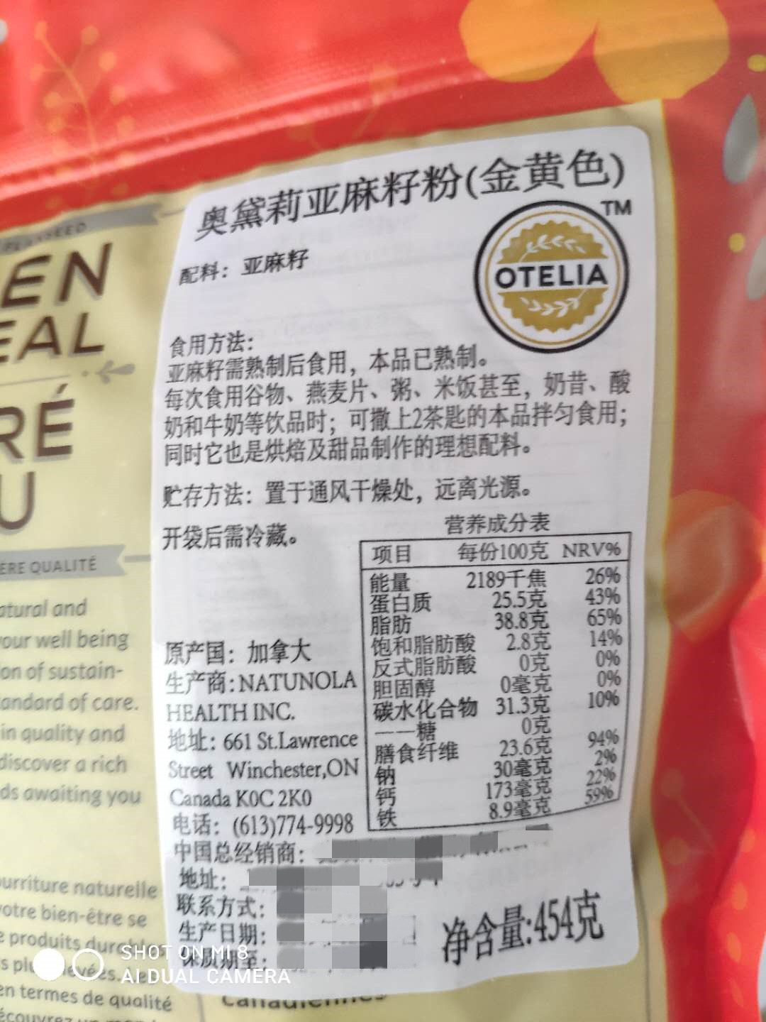 Canada imports Audrey gold flaxseed powder Flax Seed Meal breakfast cereal grains 454g