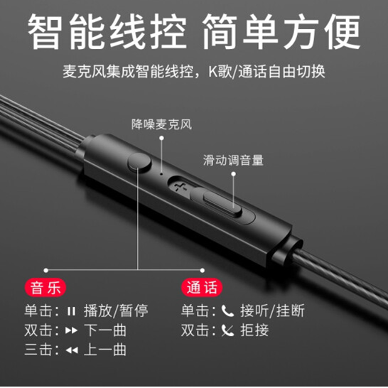 Platinum classic Type-C headphones Xiaomi 9 SE Xiaomi 8 Applicable 6X Black shark Note3 in ear type Mix2S Huawei P20