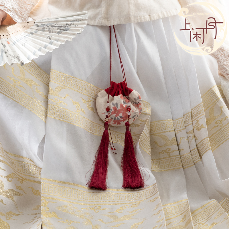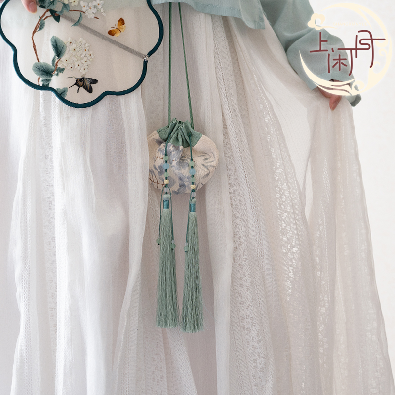 Shang Leisure Moon Full Court purse ancient style Hanfu accessories ink printing women's sachet bag handmade tassel finished product