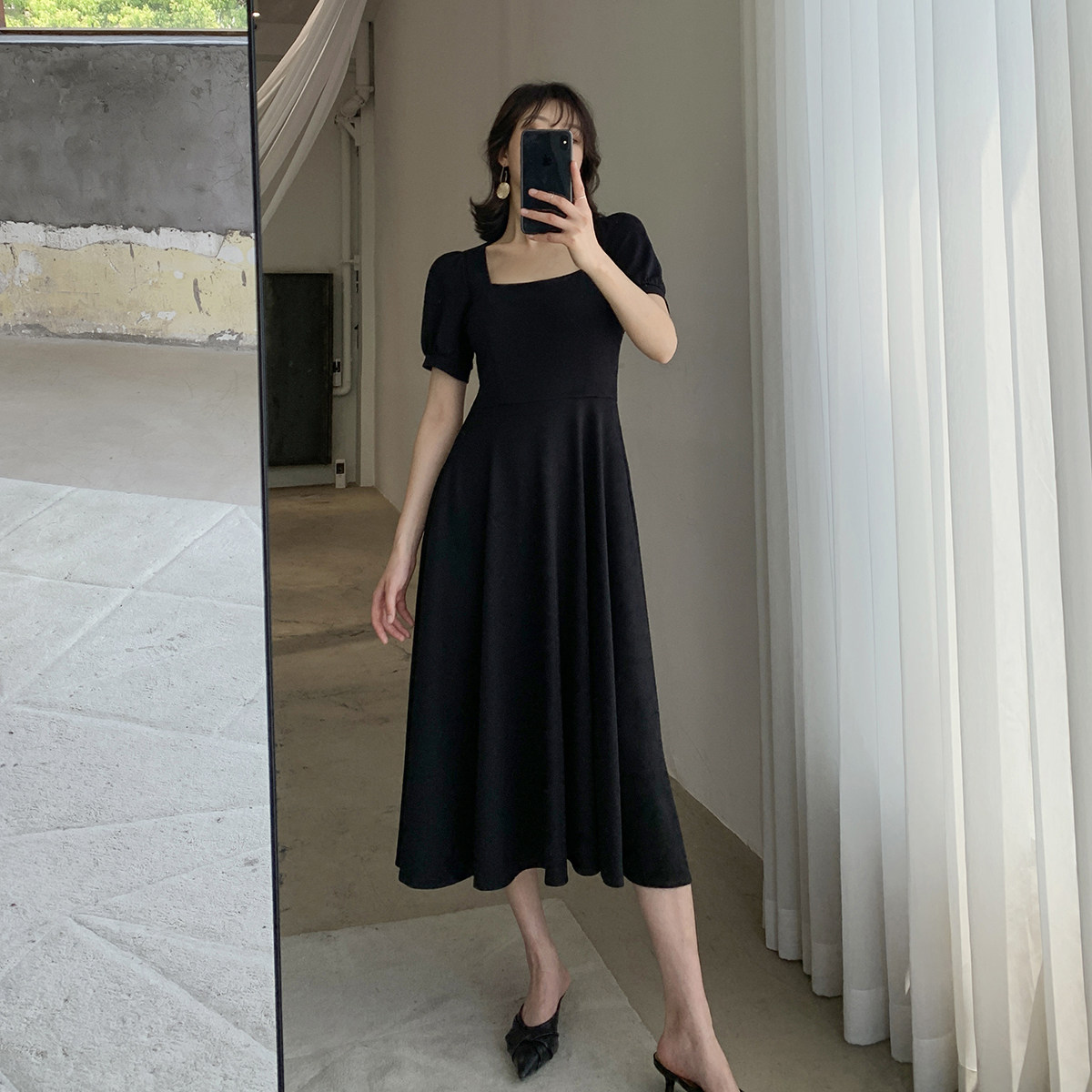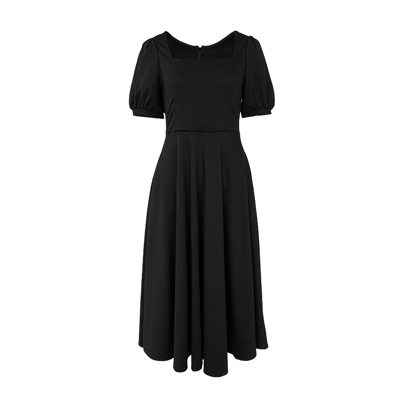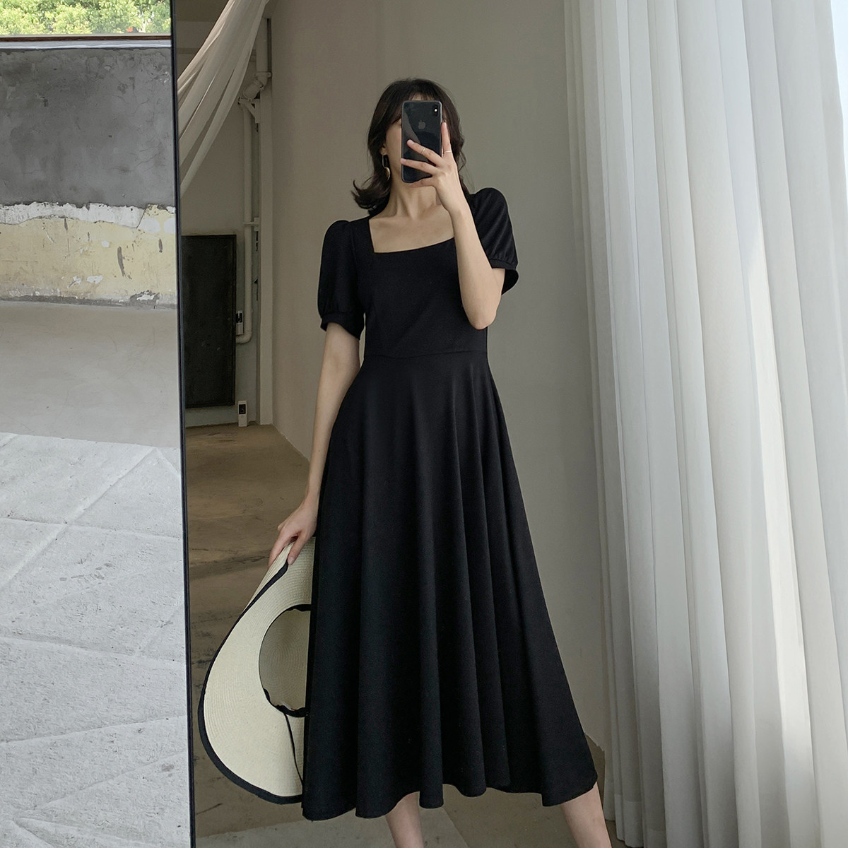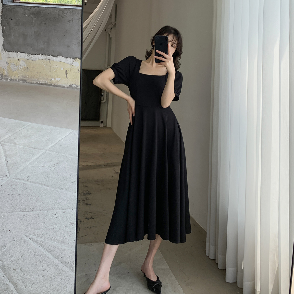 Goothic Custom Black Ocean Dress Woman 2022 Summer new French style retro Hepburn Square Collar Temperament Little Black Dress