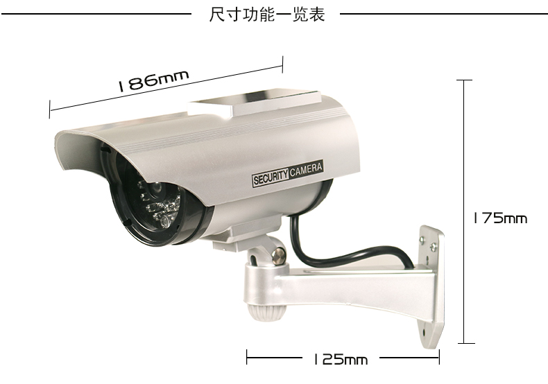 Solar fake camera surveillance simulation camera probe monitor model anti-theft with lights outdoor rainproof home