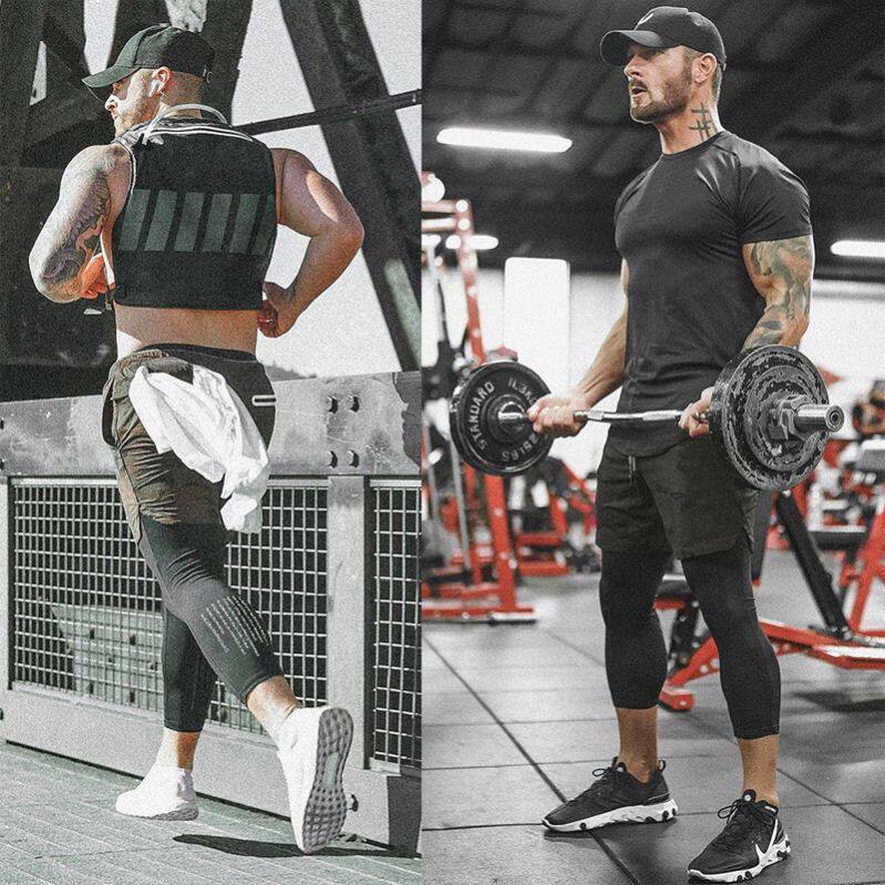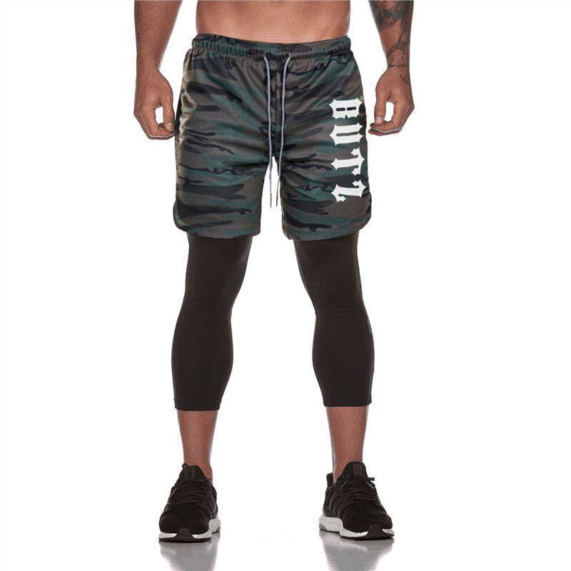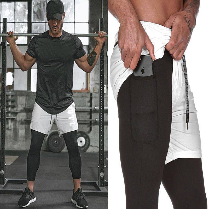 Summer new fake two-piece training tight shorts men's fitness running quick-drying breathable marathon three-point pants
