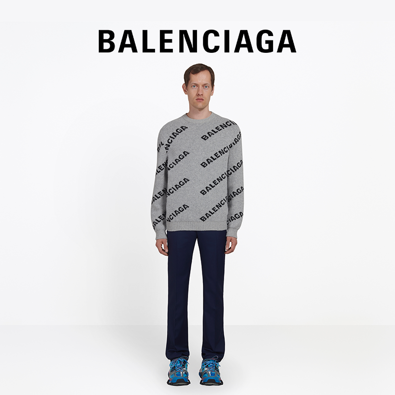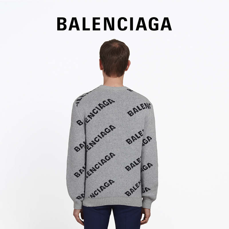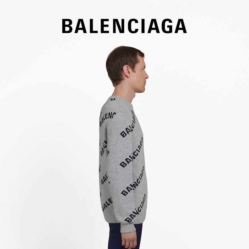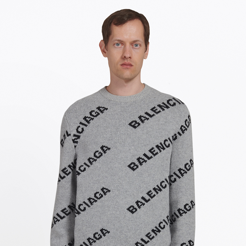 BALENCIAGA BALENCIAGA ALLOVER LOGO MEN's INLAID KNIT CREW NECK SWEATER