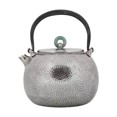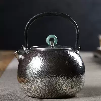 Dust Lu produced pure handmade silver pot foot silver 9999 household boiling kettle hammer iron lifting beam mouth to play silver pot