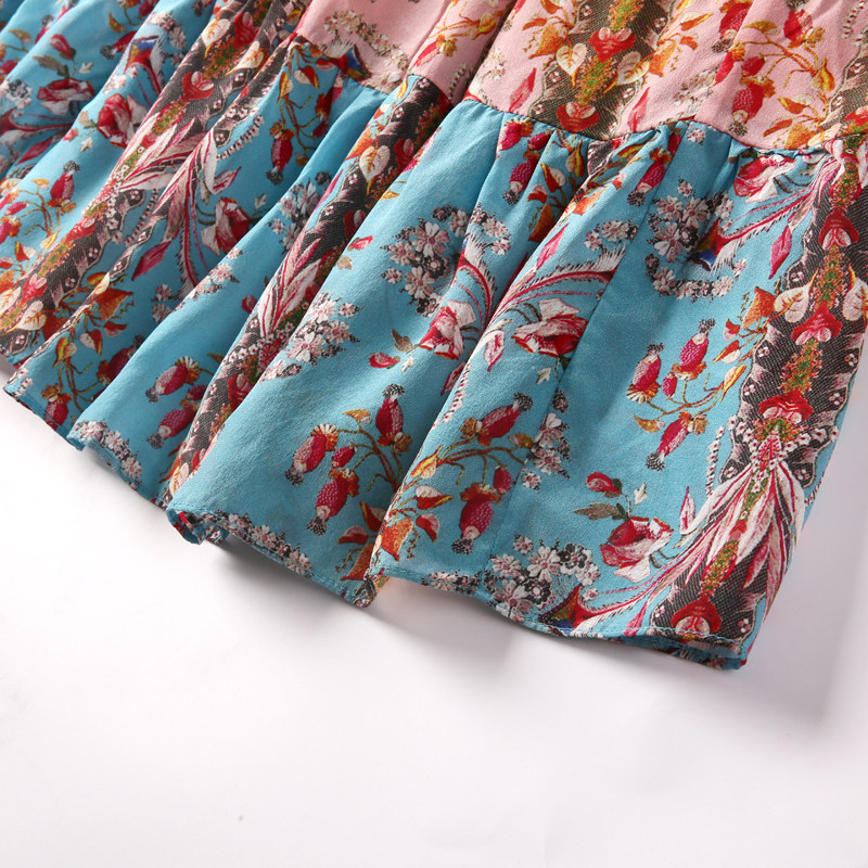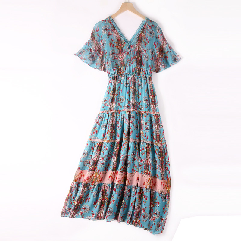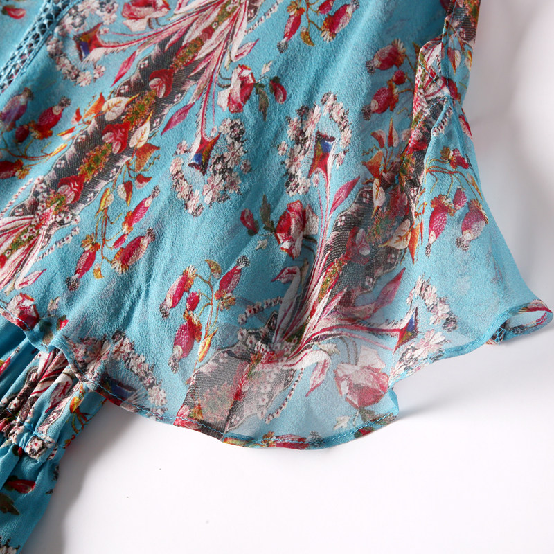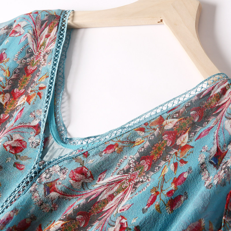 Floral chiffon dress women's summer careful machine thin 2020 new women's summer five-point sleeve flared sleeve skirt