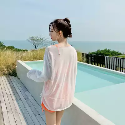 Swimsuit women's summer 2021 new conservative two-piece long-sleeved sunscreen belly cover thin large size hot spring student seaside swimsuit
