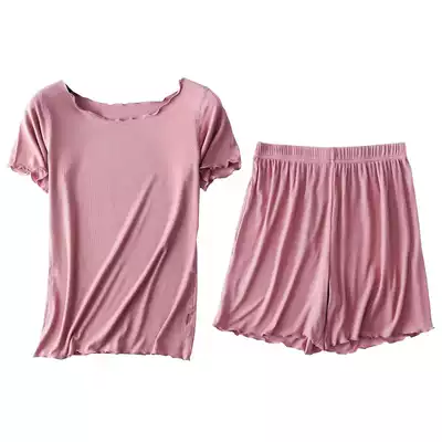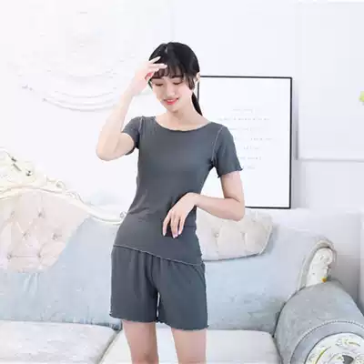 Fungus edge summer thin short-sleeved shorts suit threaded modal pajama top home service yoga Korean bottoming
