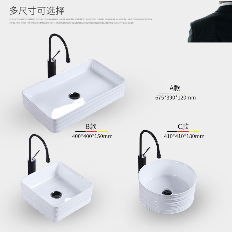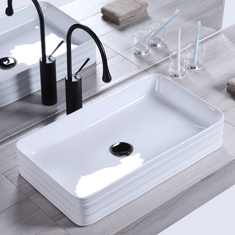 A rectangular singlet ceramic surface water rectangular basin with black square faucet package A rectangular basin with black waterfall faucet package A rectangular basin with white rotating faucet package A rectangular basin