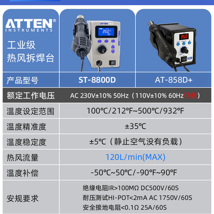 ATTEN Antexin ST8800D Intelligent disassembly and welding table 800W Number of display high-power hot wind gun adjustable thermostatic welding table