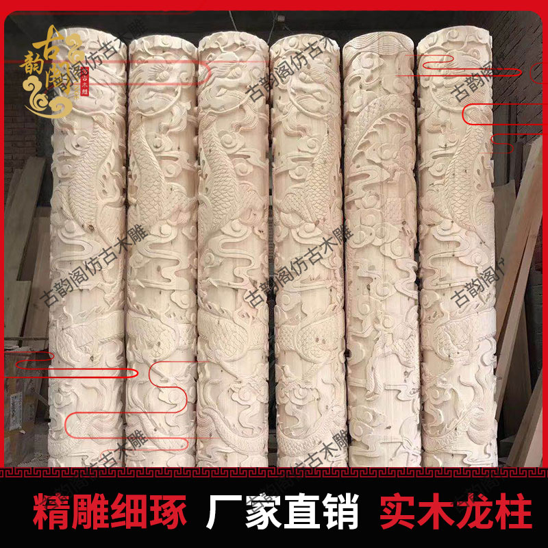 Dongyang wood carving imitation ancient solid wood dragon column handmade engraving Xiangyun Longfeng Chinese hollowed dragon column Roman decoration customized