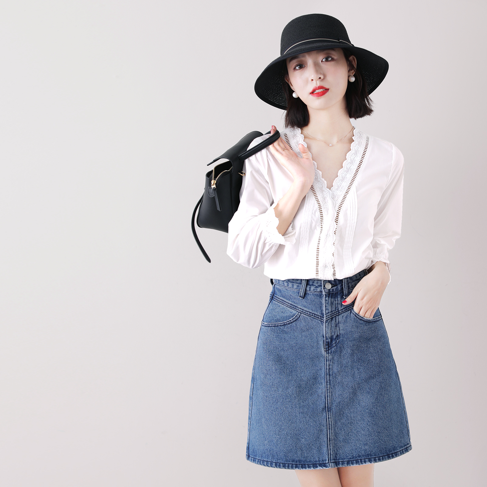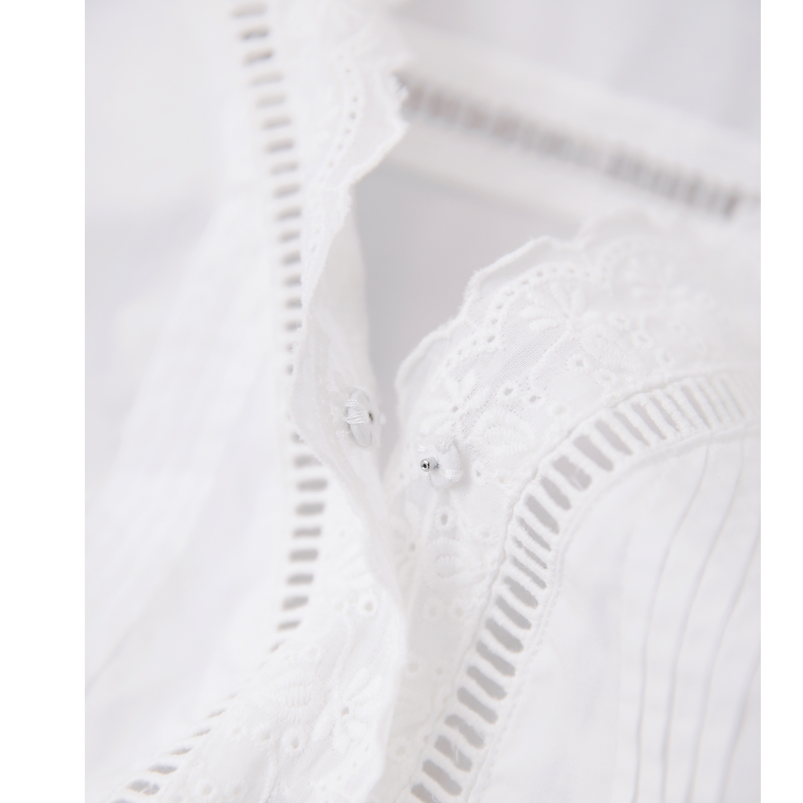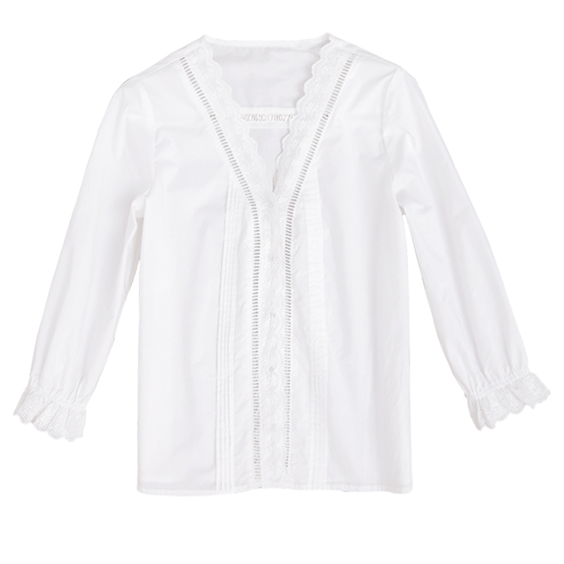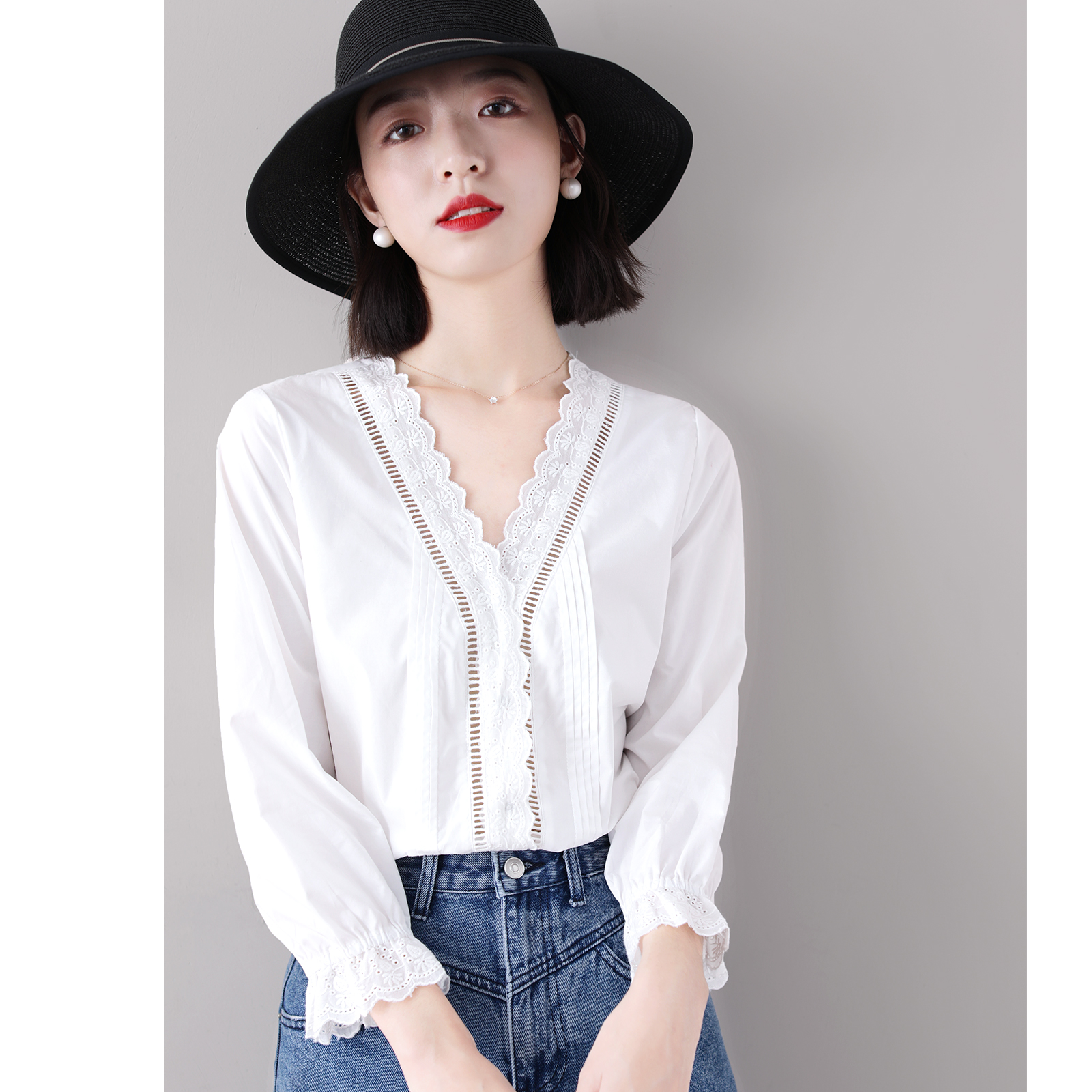 Through Fairy Air Beauty Wheel Beauty is very gentle hollowed-out lace florian lace pure cotton white shirt