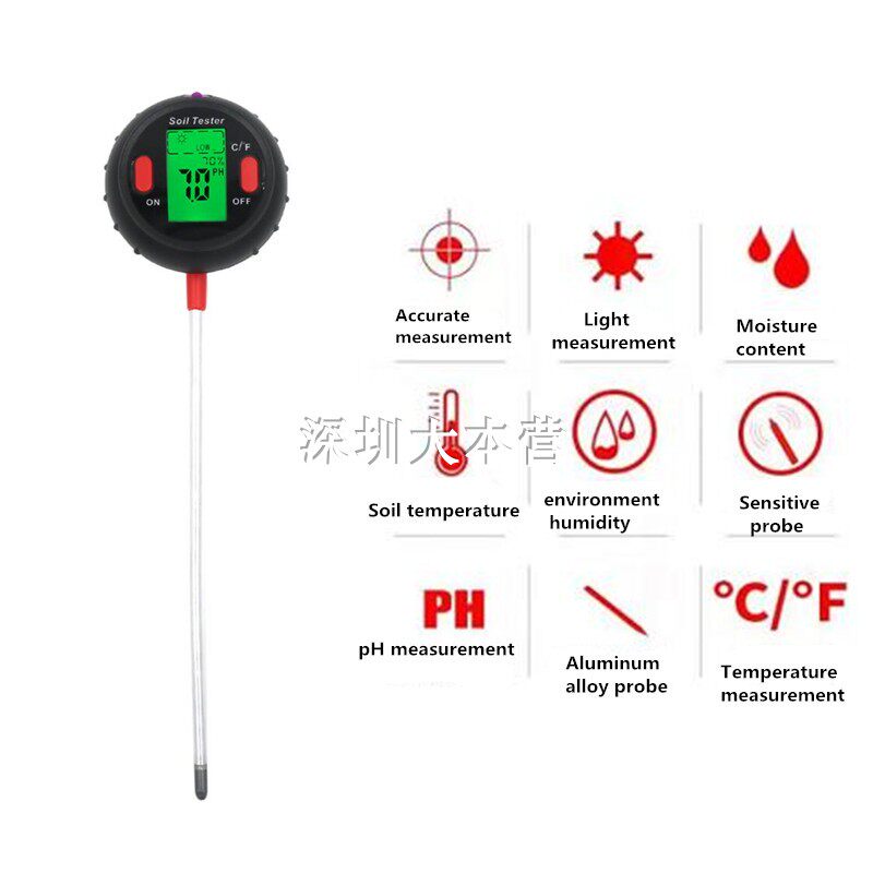 New 5 all-in-one soil tester humidity temperature ph acid pH level light moisture content 5-in-one soil meter