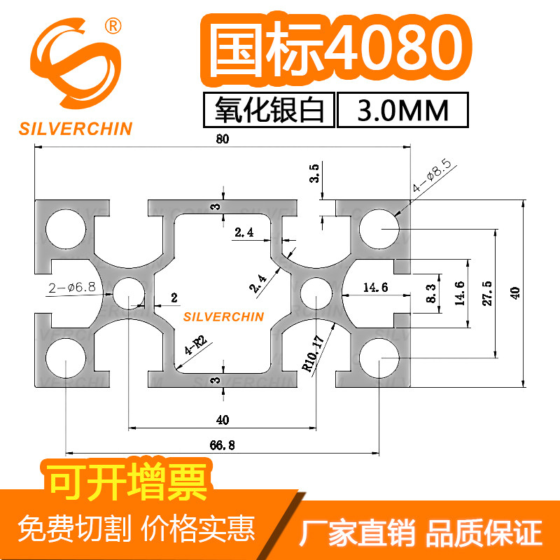 National Standard 4080 Industrial Aluminum Alloy Profile Wall Thickness 3 0MM Pipeline Automation Equipment Framework Manufacturers Direct Sale