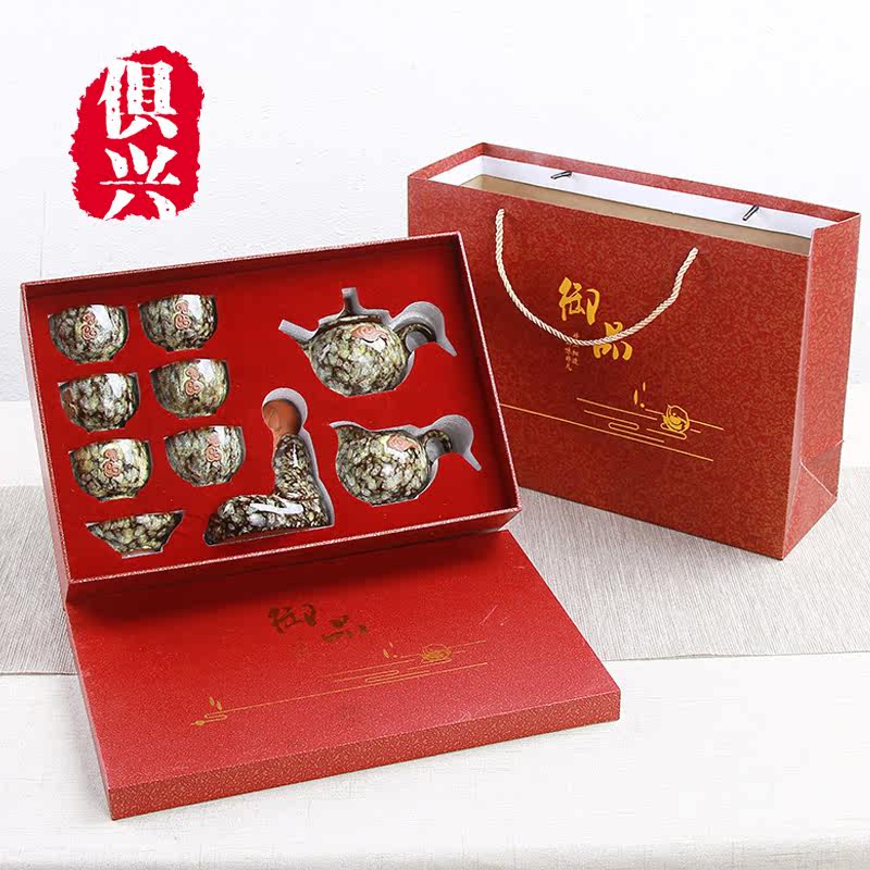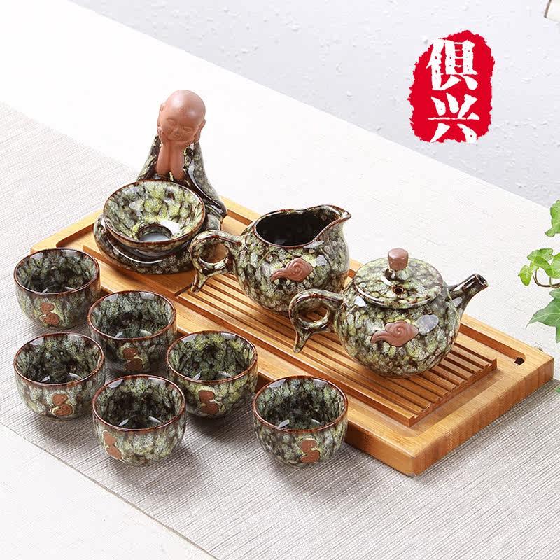 Deification Hand Painted Xiangyun Relief Gongfu Tea furniture set Group Jun Kiln Kiln Change of Glaze Household Teapot Tea Cup Business